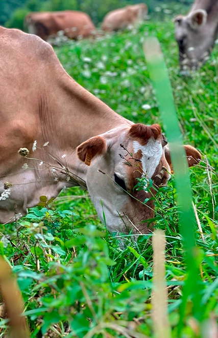 Nuestro enfoque no solo beneficia a nuestros animales, sino también a la tierra misma. Practicamos el pastoreo regenerativo, un sistema que mejora la salud del suelo, aumenta la biodiversidad y captura carbono, contribuyendo activamente a la lucha contra el cambio climático. Nuestras vacas, al pastar en rotación, estimulan el crecimiento de nuevas hierbas y plantas, regenerando el paisaje y fortaleciendo el ecosistema. Este ciclo de vida armonioso entre el suelo, las plantas y los animales es el eje central de nuestra producción.